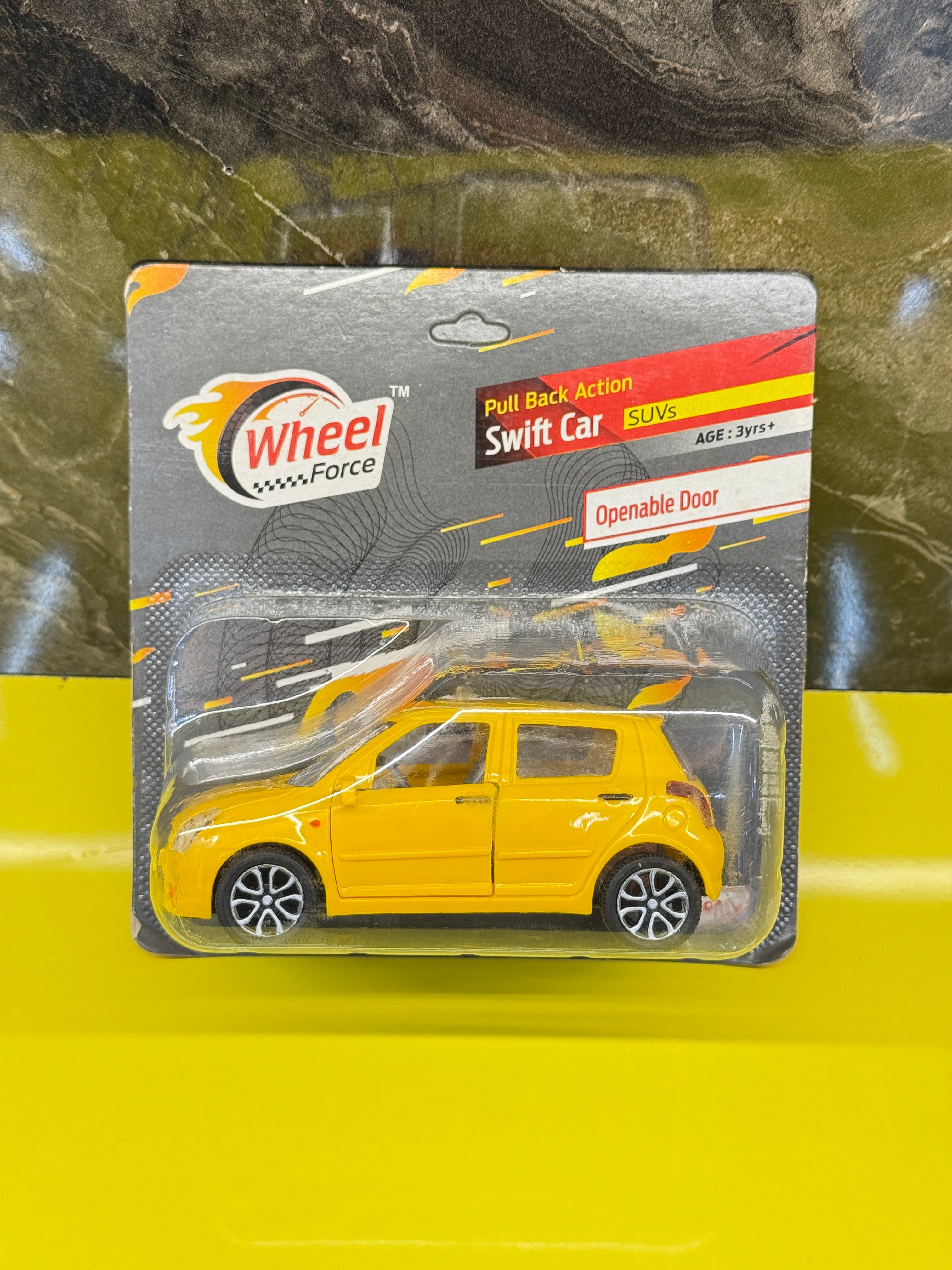 Premium Centy Swift toy car in bright yellow with pull-back action.