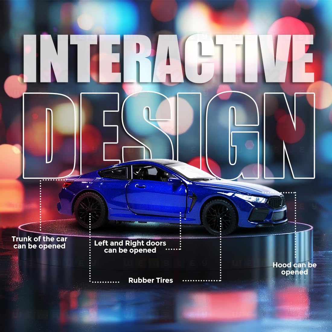 Premium BMW M8 Coupe 1:36 Scale Diecast Metal Toy Car with Lights, Sound & Pull-Back Action