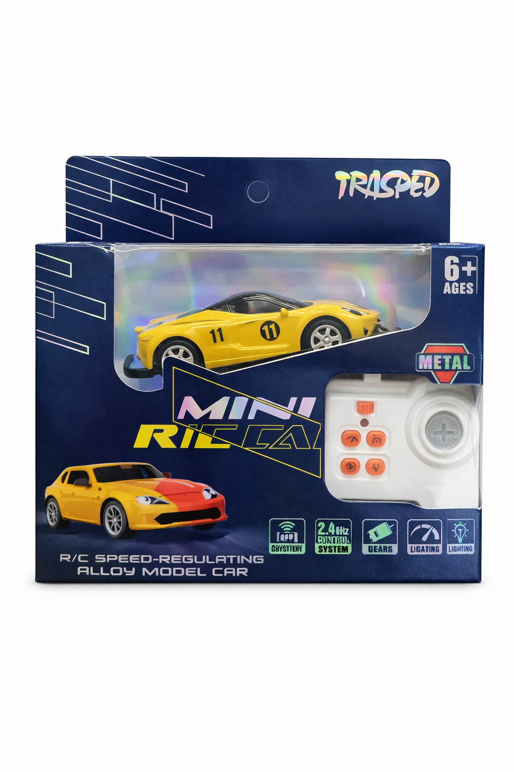 Ferrari-inspired mini RC supercar with classic yellow racing finish.